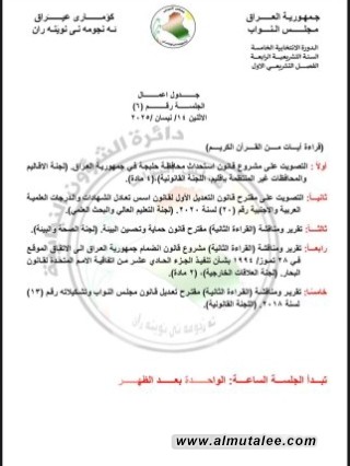 فەرمانگەی ڕاگەیاندنی ئەنجوومەنی نوێنەران، کارنامەی دانیشتنی ڕۆژی دووشەممەی داهاتووی بڵاوکردەوە، بە پارێزگابوونی هەڵەبجە لە یەکەم بڕگەی کارنامەکەیە.