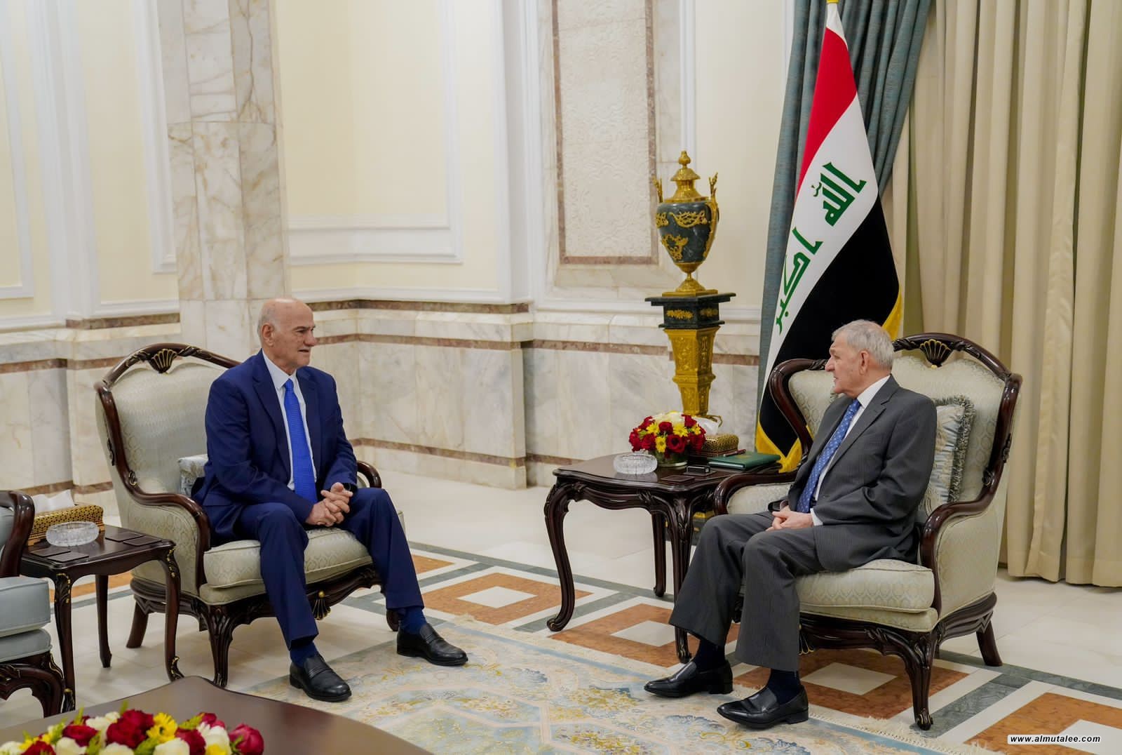 كما استقبل رئيس الجمهورية عبد اللطيف جمال رشيد، اليوم الأحد في قصر بغداد، وزير الموارد المائية عون ذياب عبد الله.