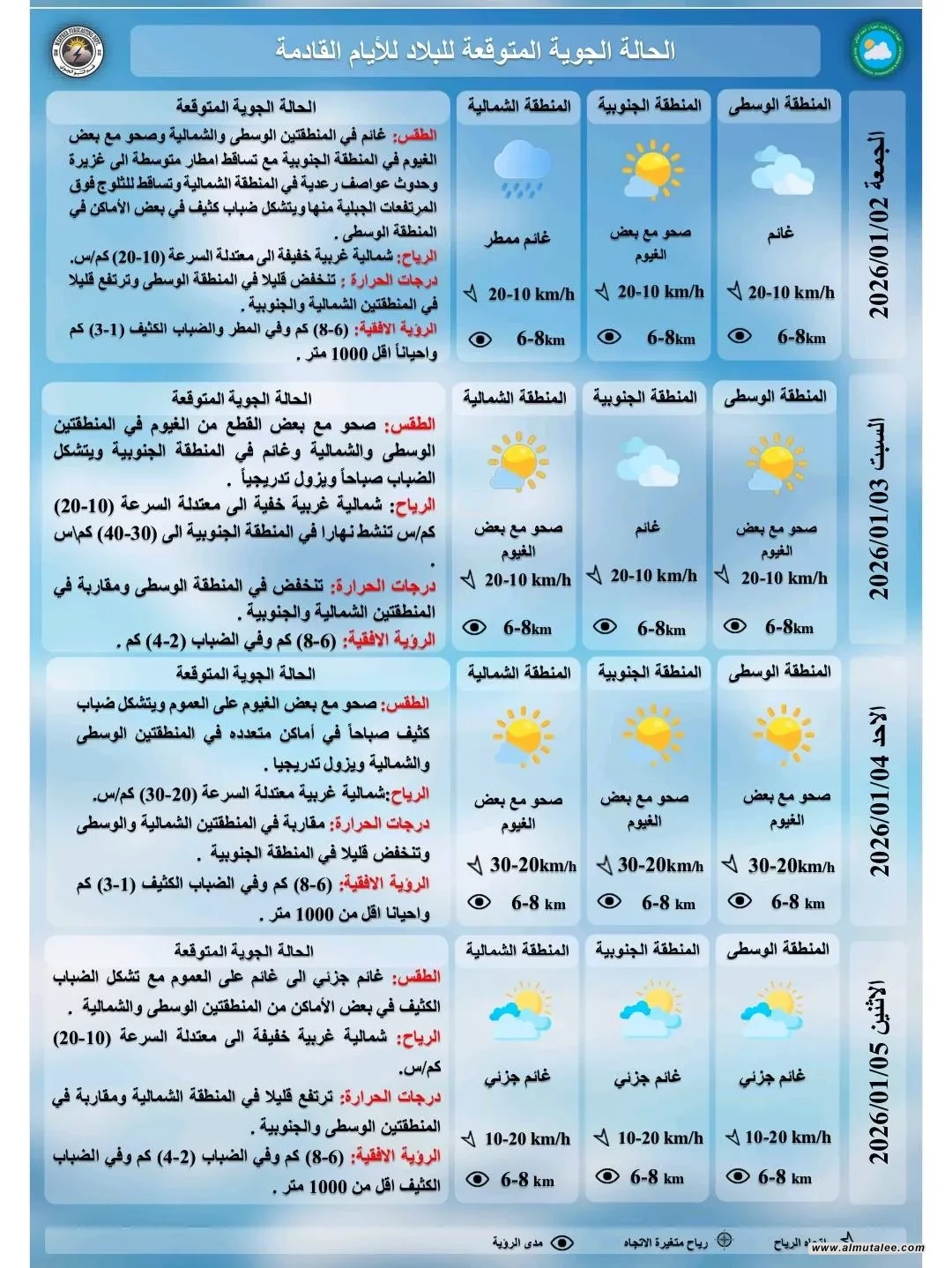 وفيما يلي توقعات الطقس التي نشرتها الهيئة:
