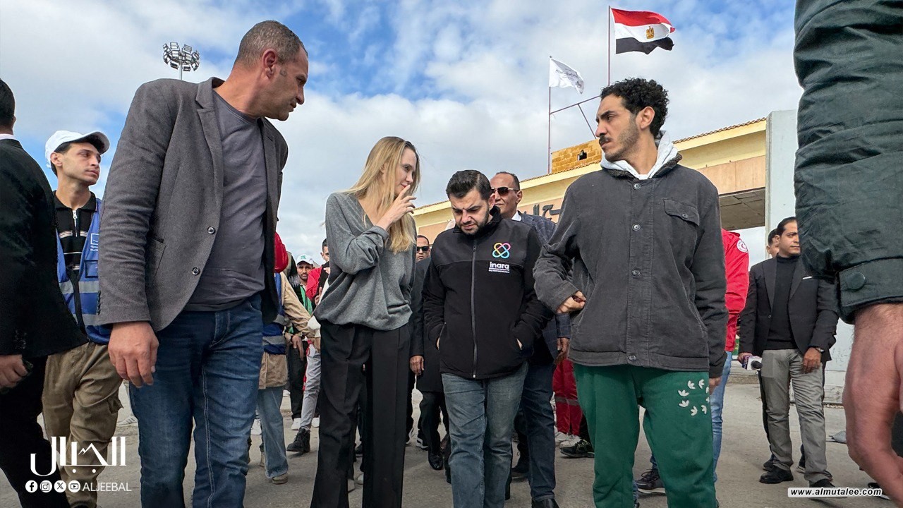 وصلت الفنانة العالمية أنجلينا جولي، اليوم الجمعة، إلى معبر رفح البري في محافظة شمال سيناء لتفقّد سير المساعدات الإنسانية المقدَّمة لأهالي غزة.