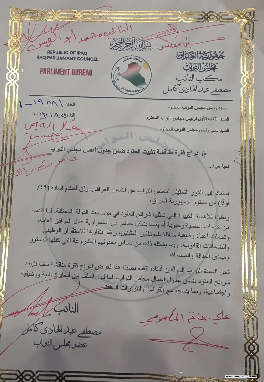 جمعت، اليوم السبت، تواقيع نيابية لإدراج فقرة على جدول أعمال مجلس النواب لتثبيت العقود.