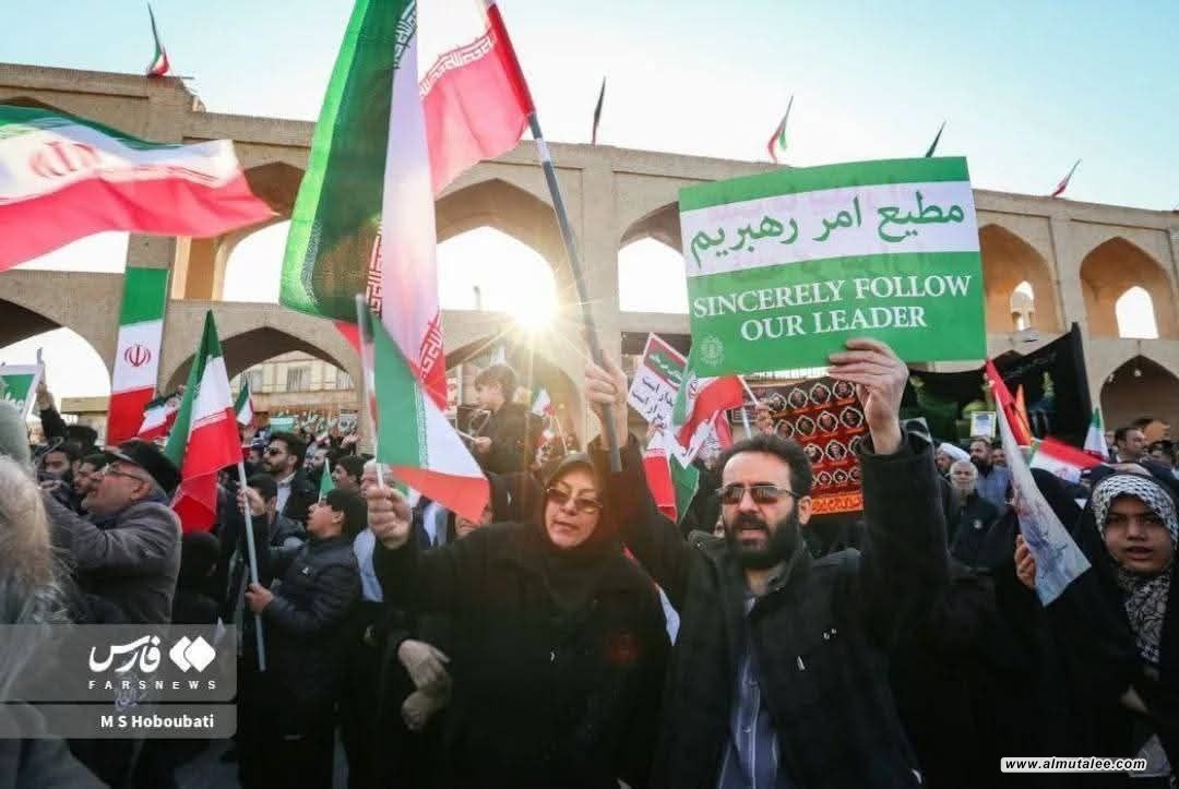بالصور... مشاهد من مسيرات التأييد للنظام والقيادة الإيرانية في مدن عدة