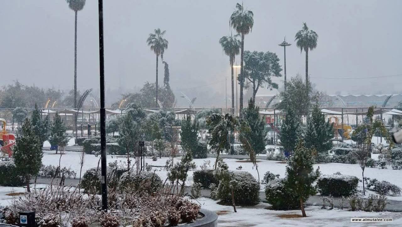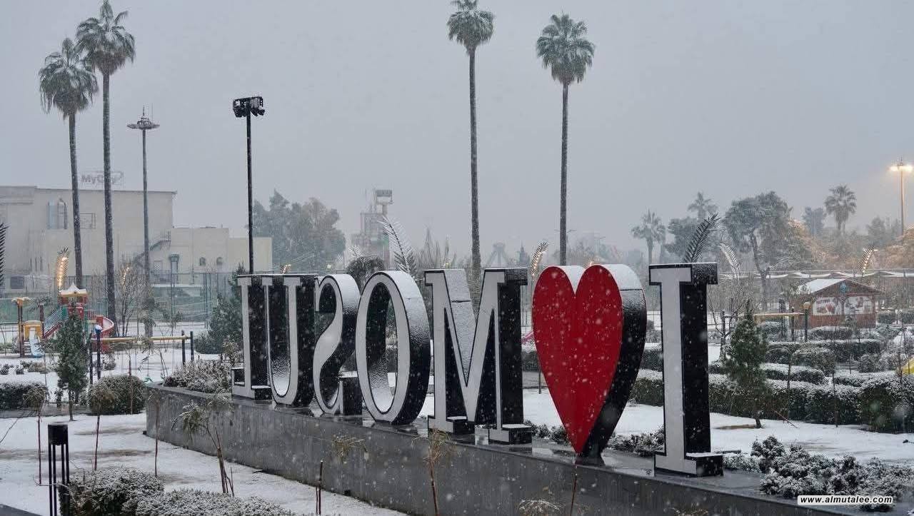 كما شهدت مدينة الموصل لقطات متداولة تظهر تغطية المدينة بطبقات كثيفة من الثلج، ما أضفى منظرًا شتويًا على الشوارع والمناطق العامة.