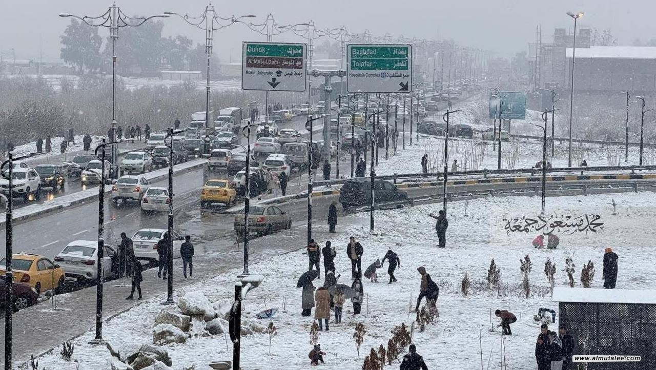 تشهد مدن أربيل والسليمانية والموصل موجة ثلجية متجددة، حيث اكتست الشوارع والأبنية والأشجار باللون الأبيض في مشهد شتوي ترافق مع انخفاض حاد في درجات الحرارة.