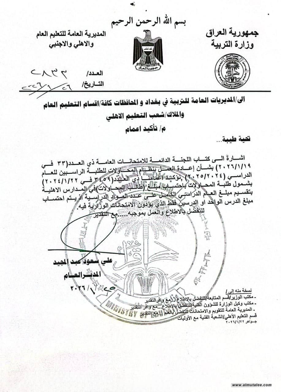وبحسب وثيقة صادرة عن وزارة التربية وتلقتها المطلع، فإن "آلية احتساب مبالغ طلبة المحاولات في المدارس الأهلية تتم من خلال تقسيم أجور العام الدراسي الكامل على عدد المواد الدراسية"، مضيفاً، أنه "يُستوفى من الطالب مبلغ المادة الواحدة أو المادتين فقط اللتين يؤدي فيهما الامتحانات الوزارية".