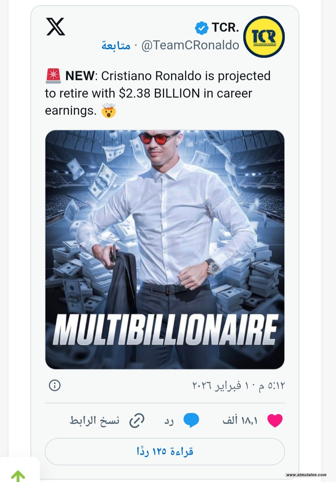 إذا تحقق هذا التقدير عند الاعتزال، فسيكون رونالدو قد أعاد تعريف مفهوم "لاعب كرة القدم المعتزل"، بتحويل شهرته إلى إمبراطورية مالية واسعة، تتجاوز ما حققه العديد من الأسماء الأسطورية في تاريخ اللعبة.