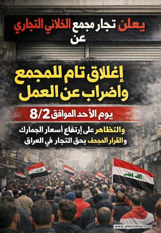 ودعا تجمع تجار العراق جميع التجار وأصحاب المحال والأسواق إلى الالتزام بالإغلاق، مؤكّدًا أنّ هذه الخطوة تهدف إلى: "تحقيق المطالب المشروعة وحماية مصالح القطاع التجاري" في مواجهة ما يصفه التجمع بـ"الأعباء الإضافية" التي تفرضها الإجراءات الكمركية الحالية.