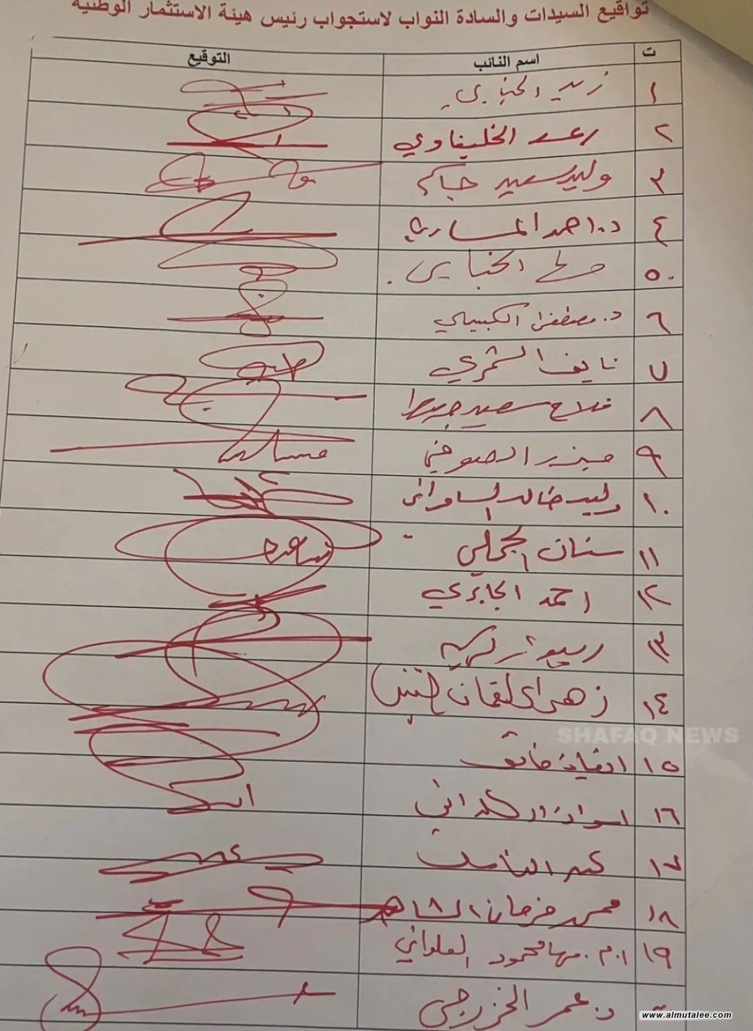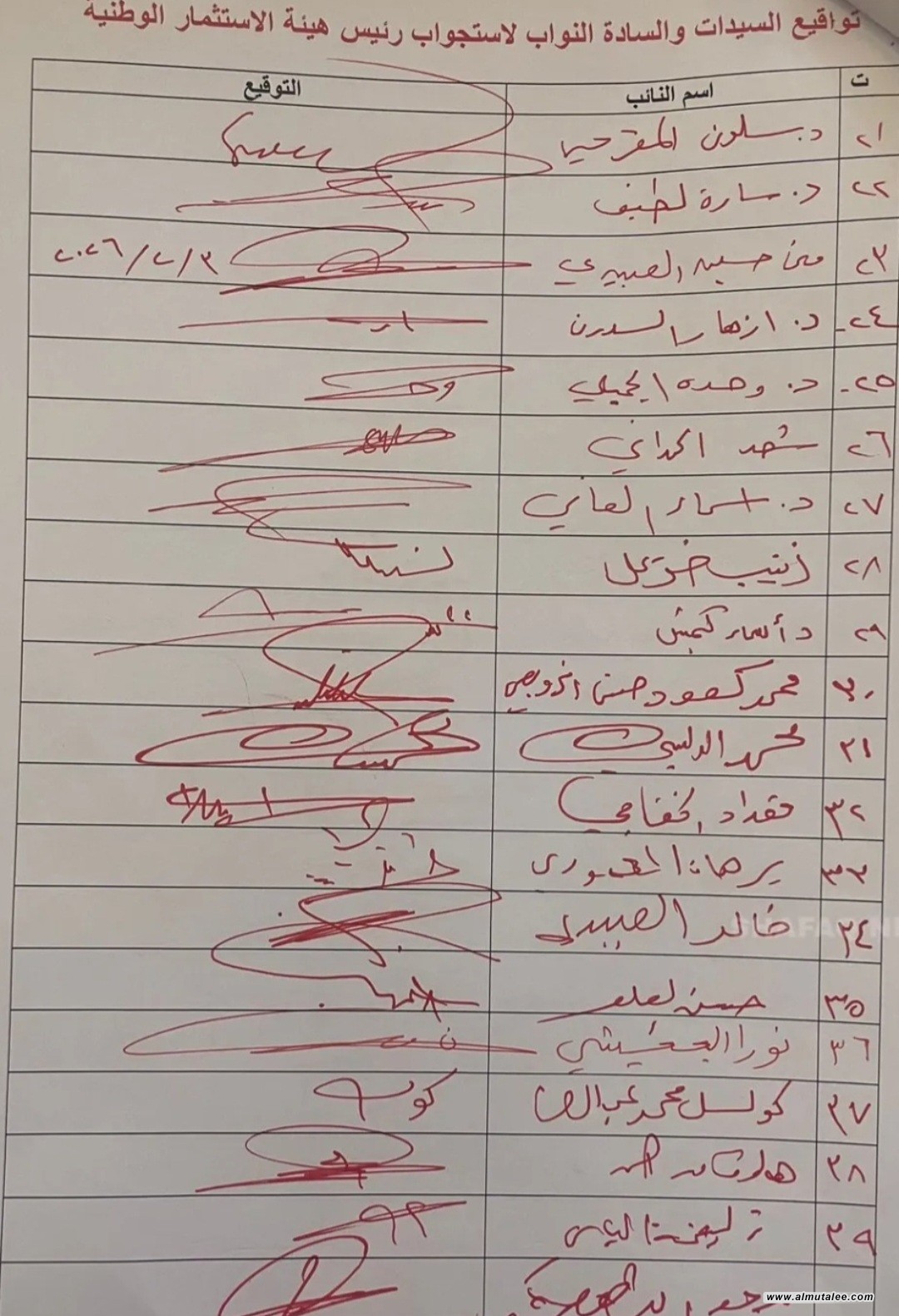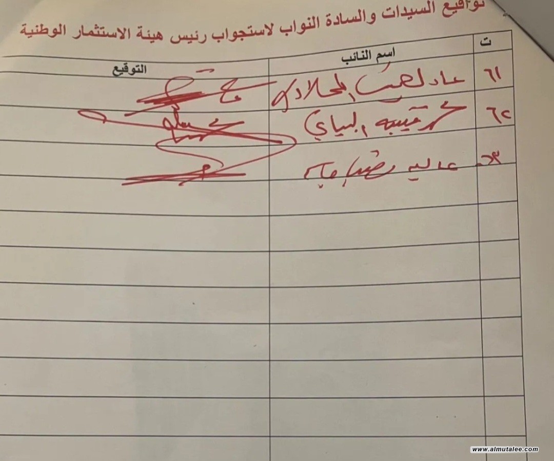 وأدناه التواقيع النيابية كما ورد لوكالة "المطلع":