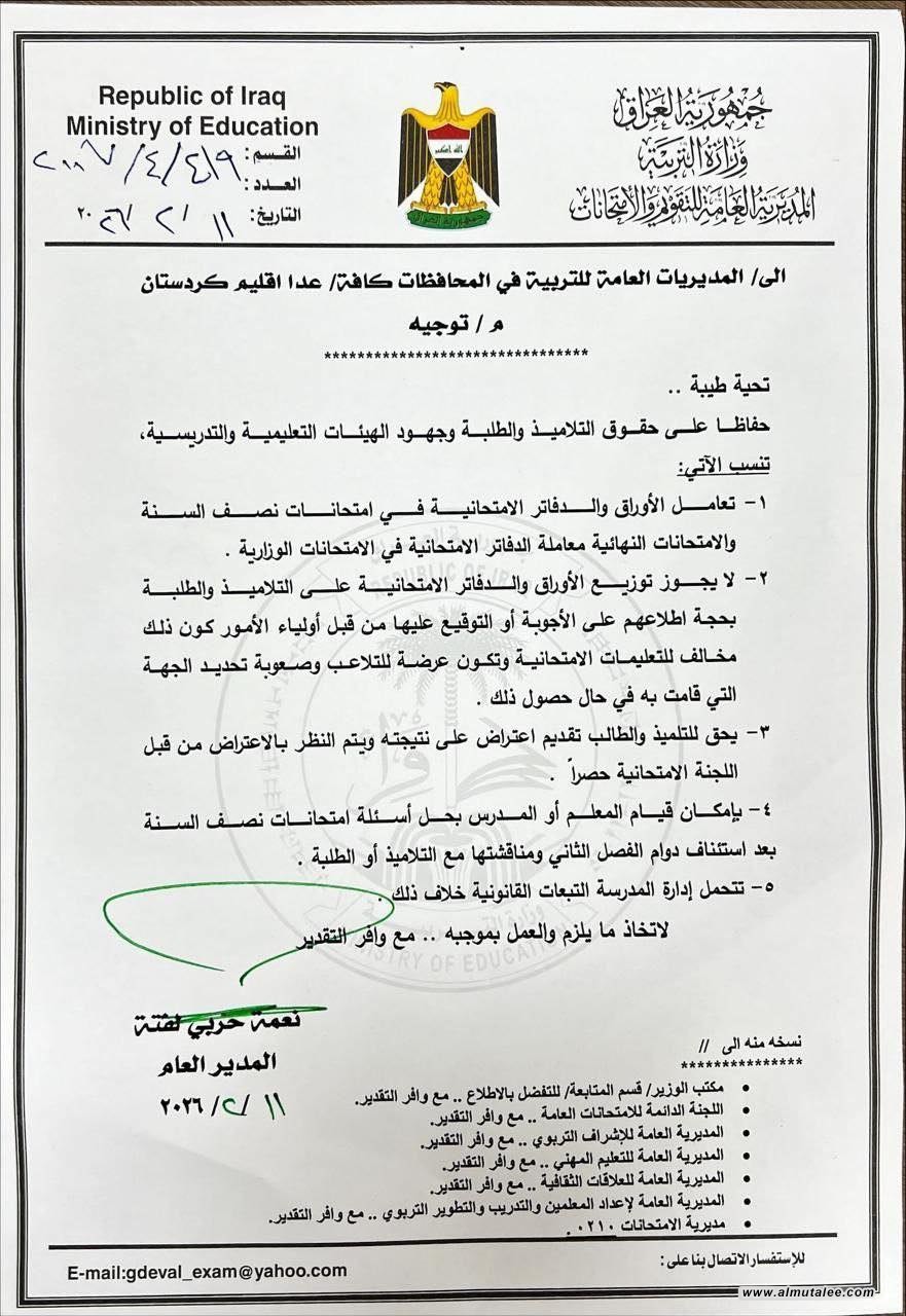 التربية تصدر توجيهات عاجلة بشأن الإمتحانات للعام الدراسي 2025 - 2026