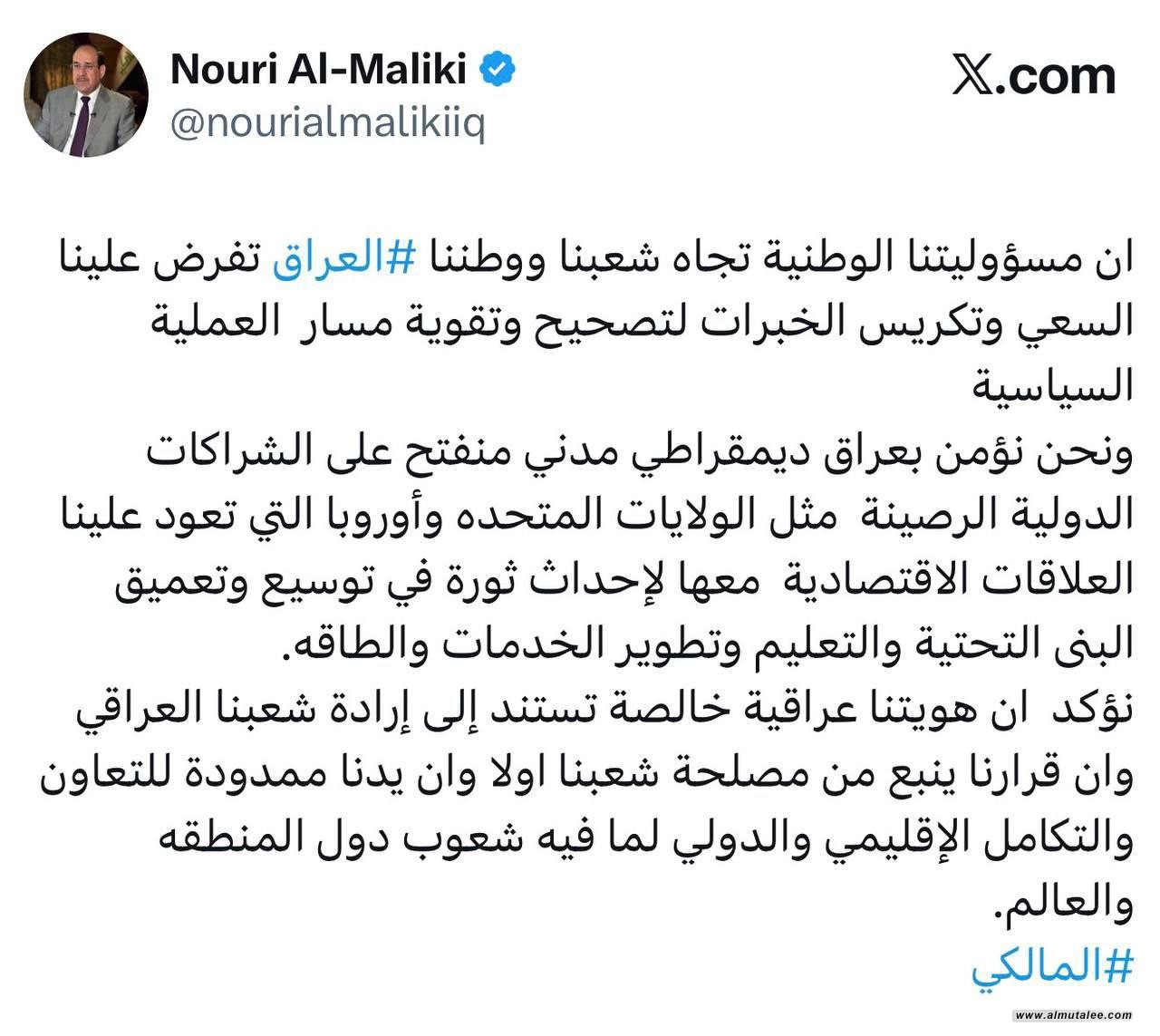 وأدناه تغريدة المالكي: