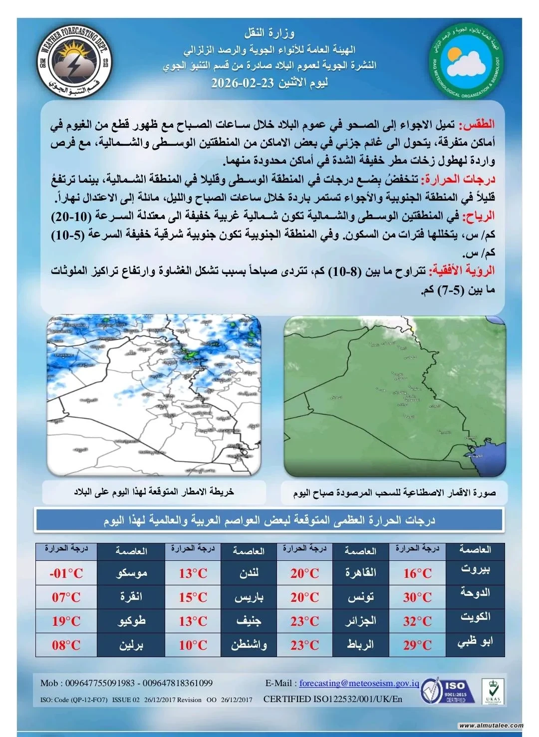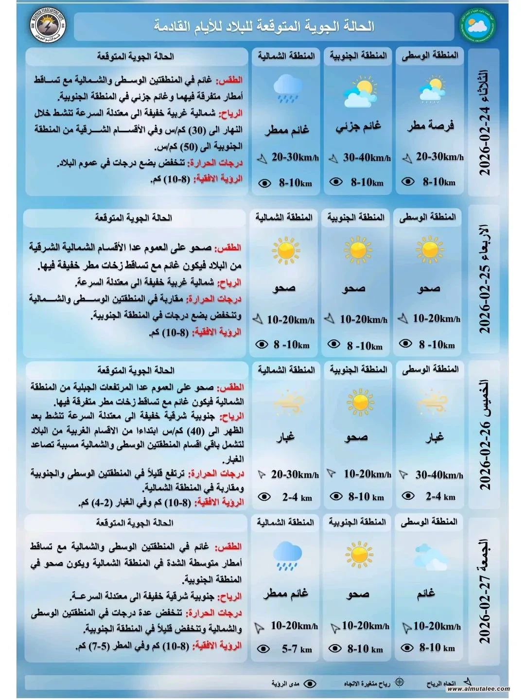وفيما يلي وثائق الحالة الجوية التي تلقتها المطلع: