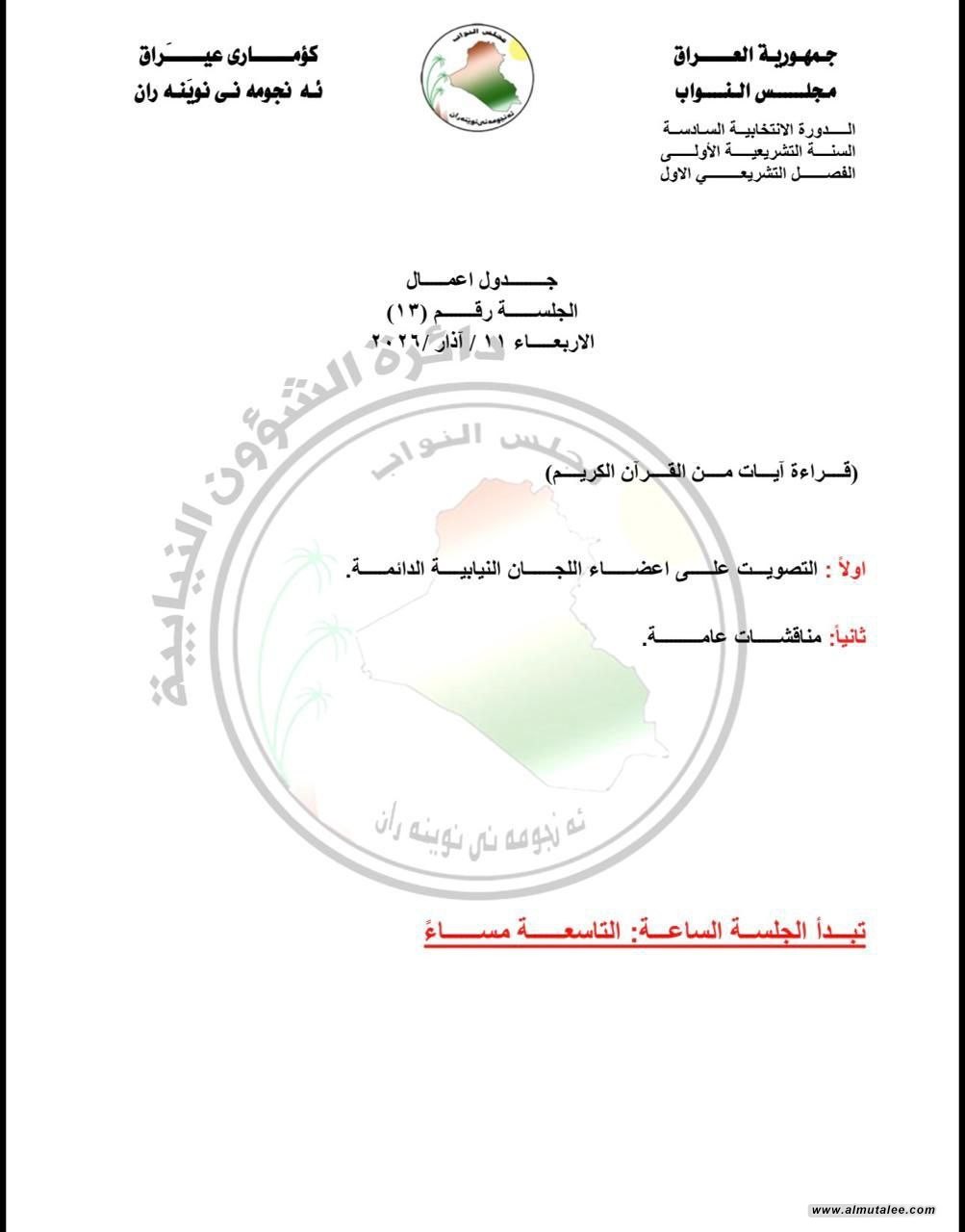 فەرمانگەی ڕاگەیاندنی ئەنجومەنی نوێنەران لە راگهیندراوێكدا کە دەستی ئاژانسی موتەڵع کەوتووە تێیدا هاتووه: "خشتەی کاری دانیشتنی سبەی چوارشەممە دوو بڕگە لەخۆ دەگرێت، یەکەمیان: دەنگدان لەسەر ئەندامانی لیژنە هەمیشەیییەکانی پەرلەمان، و بڕگەی دووەمیش: گفتوگۆی گشتییە."