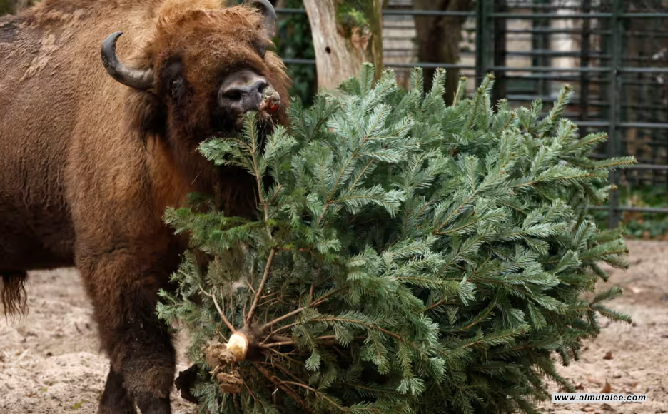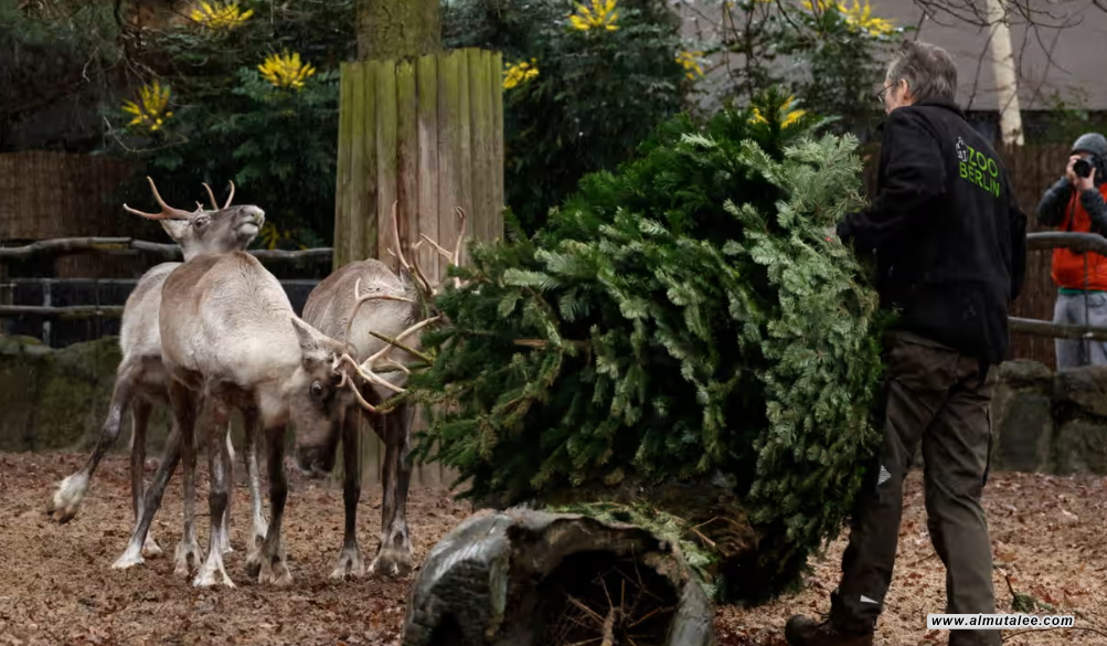 أشجار الكريسماس الفائضة تتحول لوجبة شهية في حديقة حيوانات برلين!