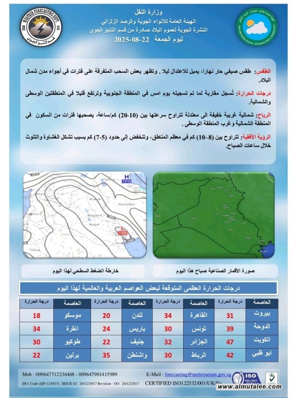 وأدناه تقرير هيئة الأنواء الجوية كما ورد للمطلع: