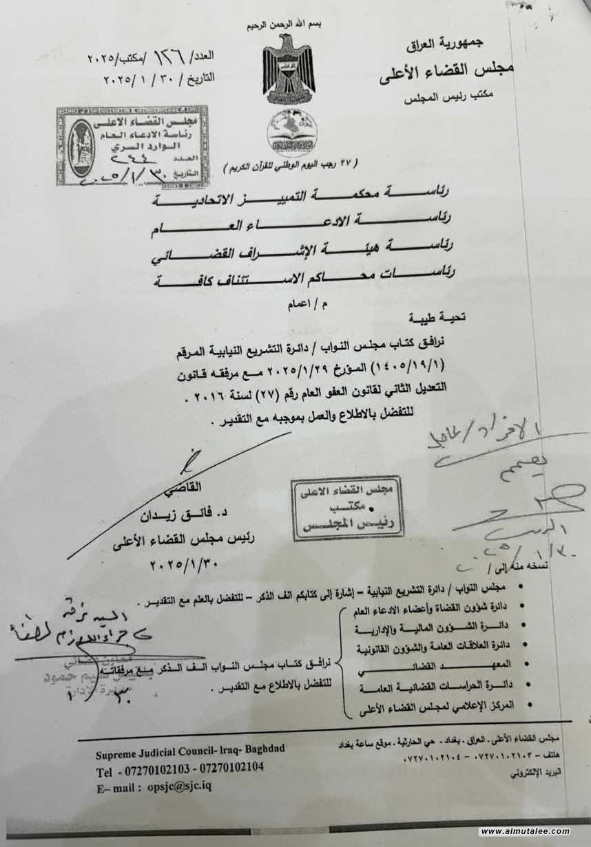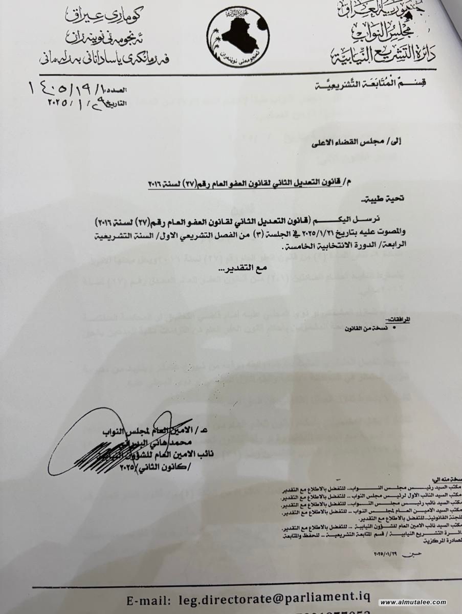 بالوثائق... القضاء العراقي يباشر العمل رسميا بقانون العفو العام