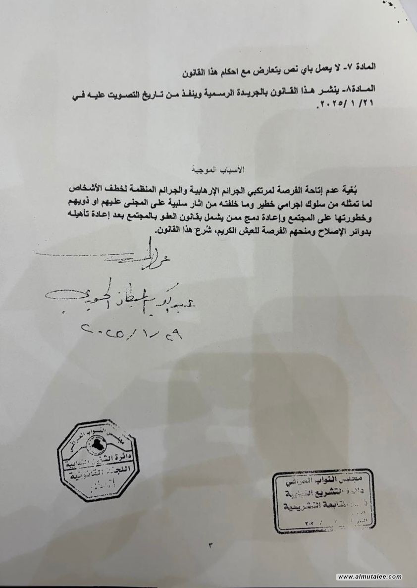 وبحسب وثائق تابعتها المطلع، فإن القضاء باشر بشكل فعلي بالعمل بقانون العفو العام".