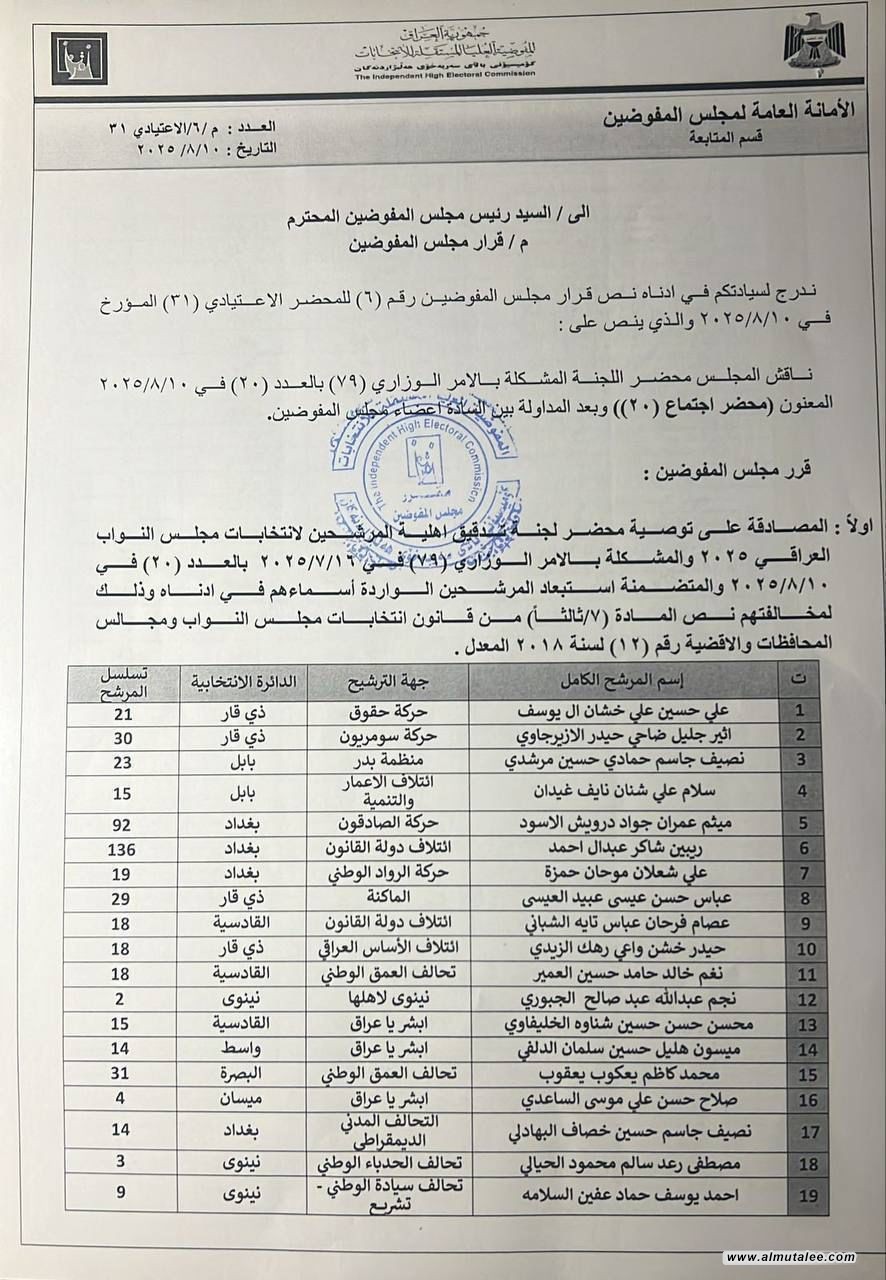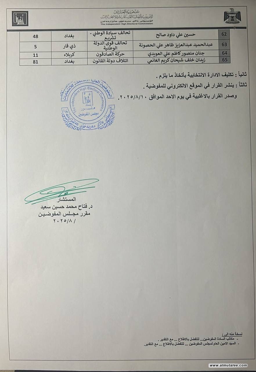 بالوثائق... المفوضية تعلن أسماء جديدة للمستبعدين من الانتخابات المقبلة