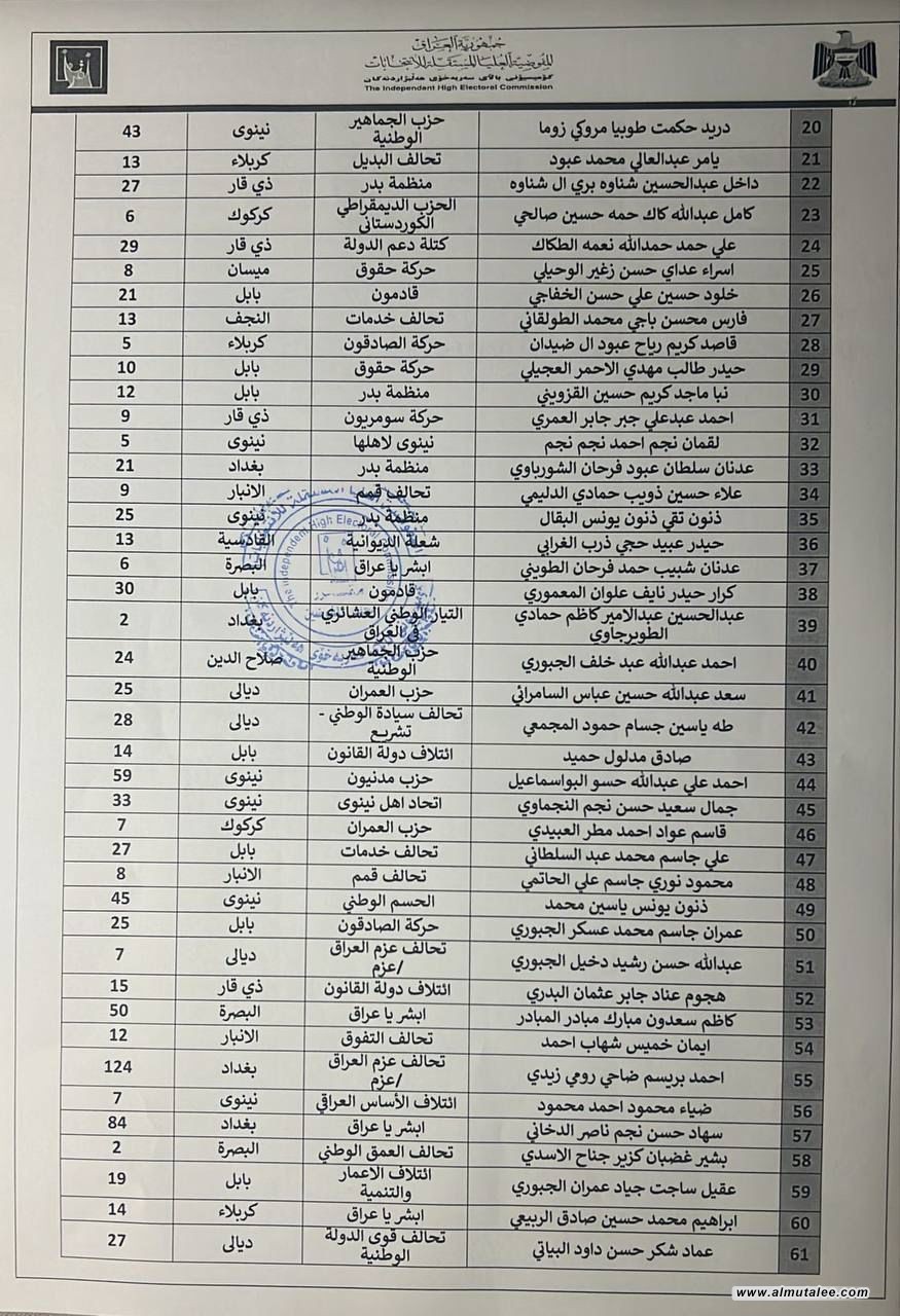كشفت المفوضية العليا المستقلة للانتخابات في العراق عن قائمة جديدة لأسماء المرشحين المستبعدين من المشاركة في الانتخابات البرلمانية المقبلة.