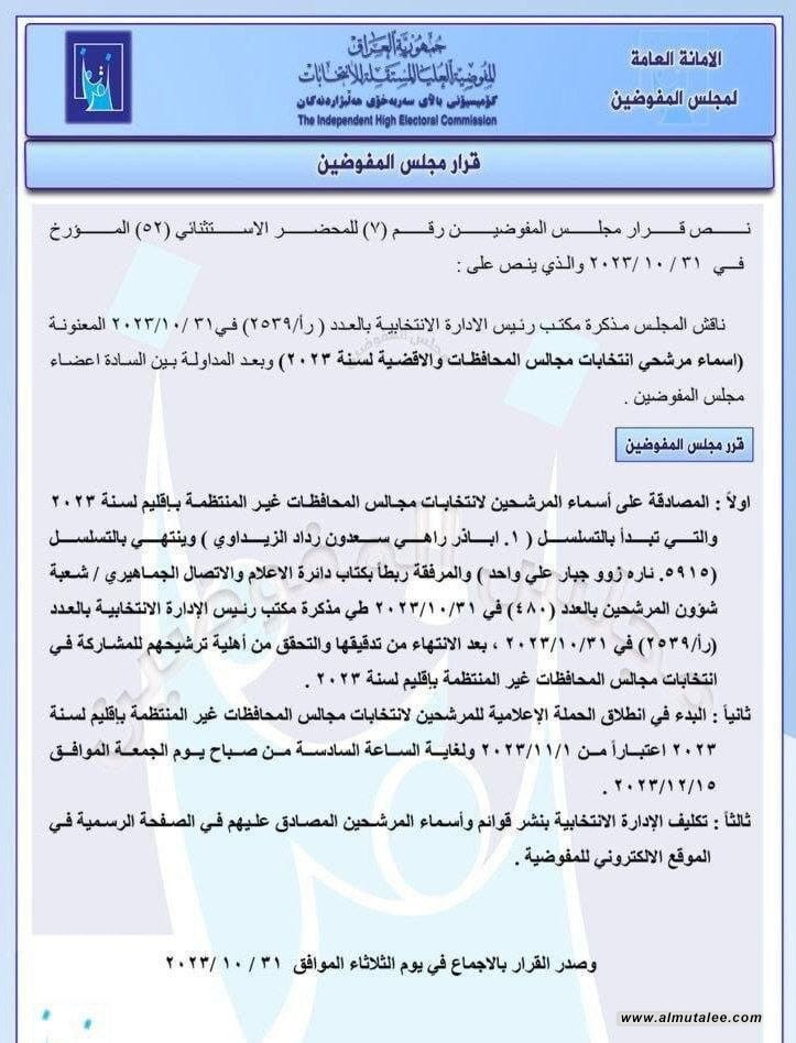 بالوثيقة... المفوضية تعلن موعد "الصمت الانتخابي"