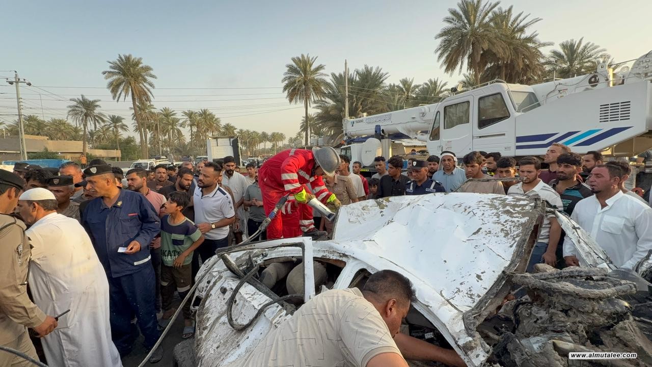 مصرع شخص بحادث تصادم سيارات كبير في كربلاء (صور)