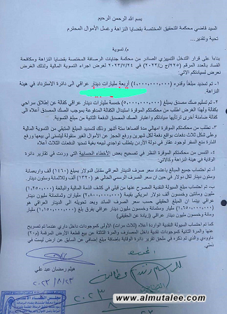 طالب المستشار المالي لرئيس الوزراء السابق مصطفى الكاظمي ،هيثم الجبوري، القضاء بتسوية المبالغ التي سرقها وتمكينهُ من تسديد المبلغ بسعر الصرف الحالي بدلاً من القديم والسماح لهُ ببيع العقارات من اجل تسديد المتبقي من السرقة .