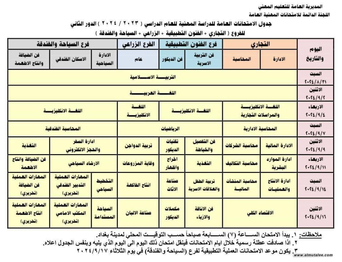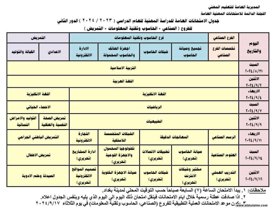 "المطلع" تنشر جدول الامتحانات المهنية العامة للدور الثاني للفروع المهنية كافة والتمريض