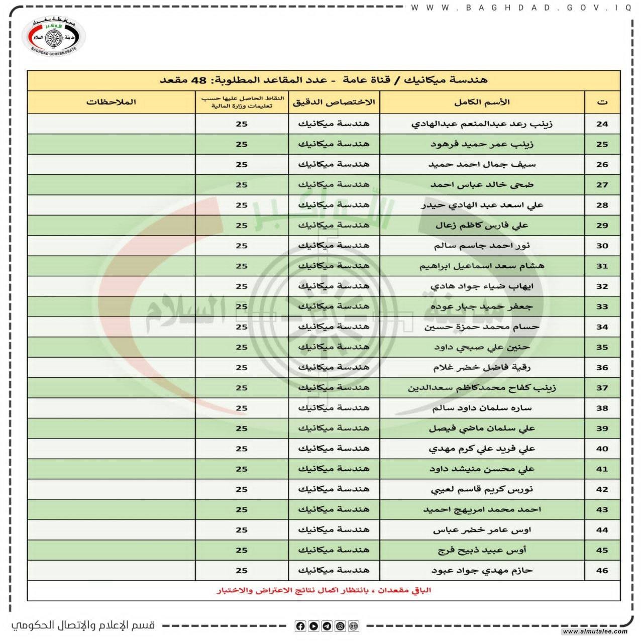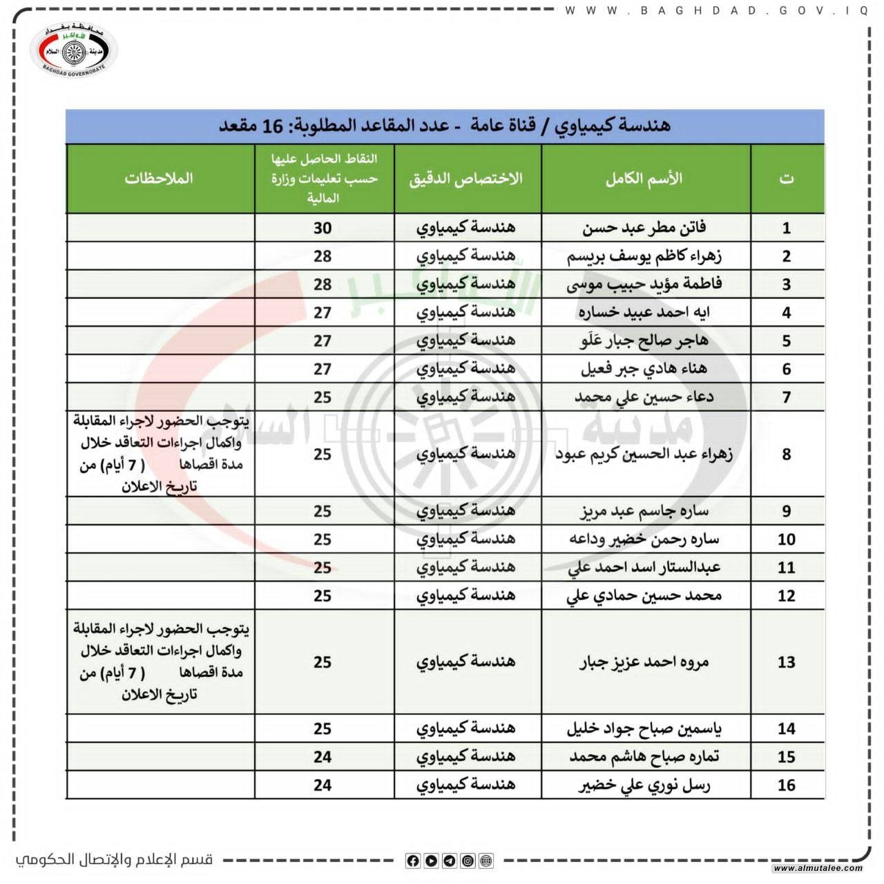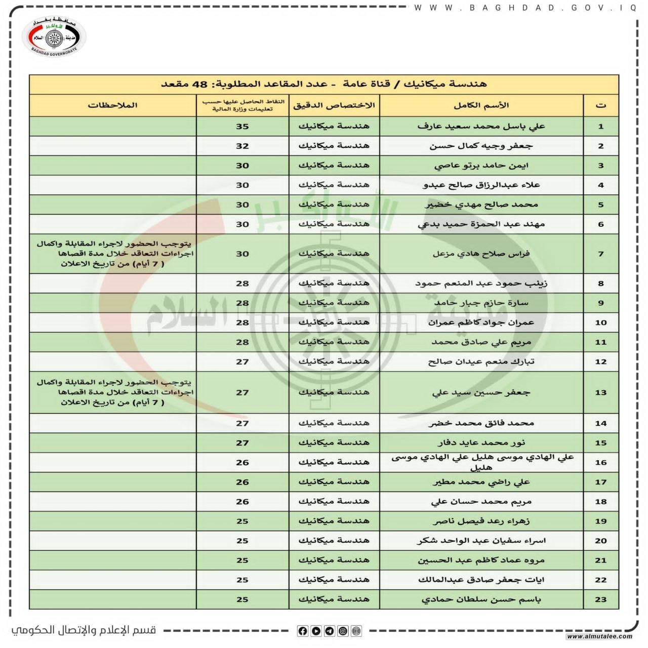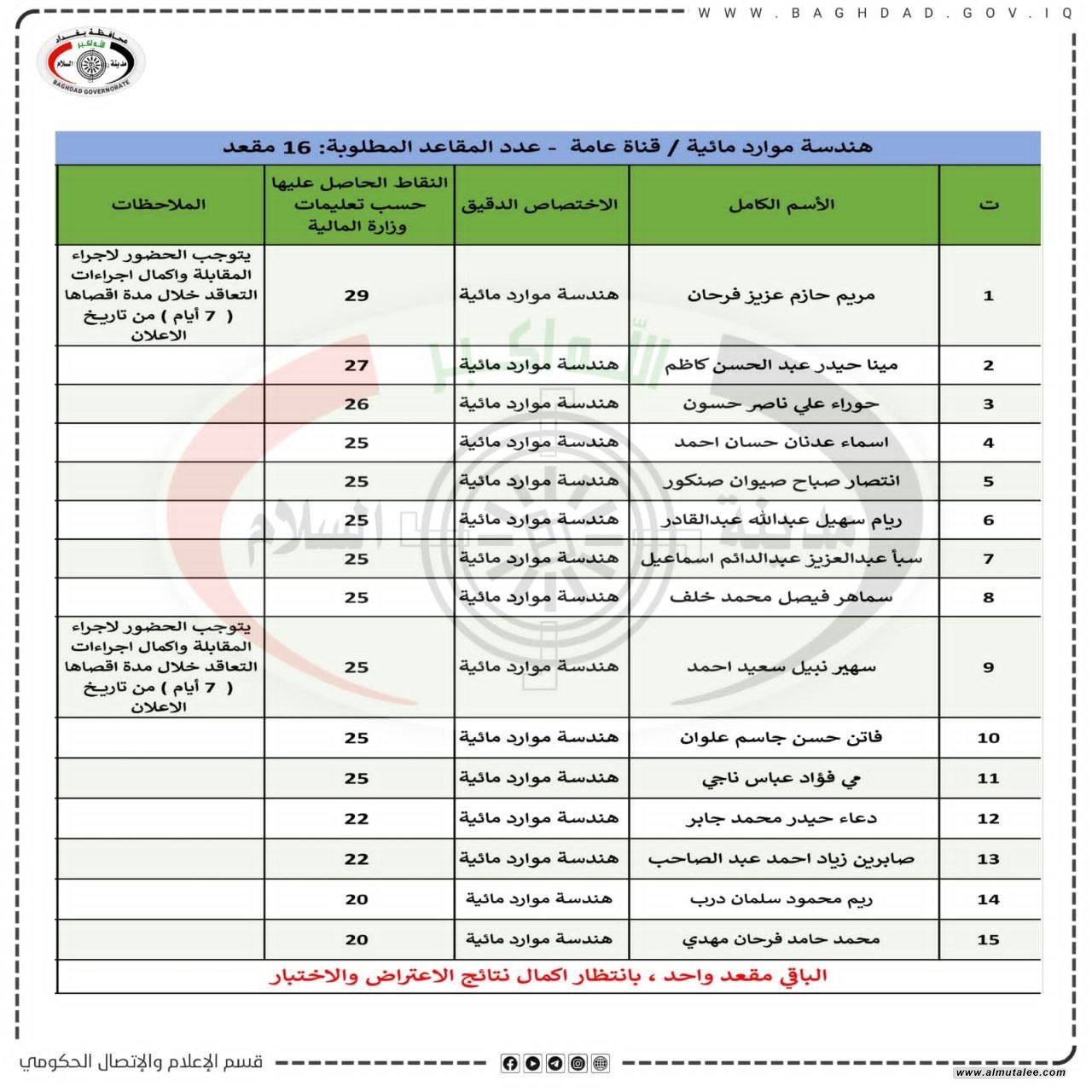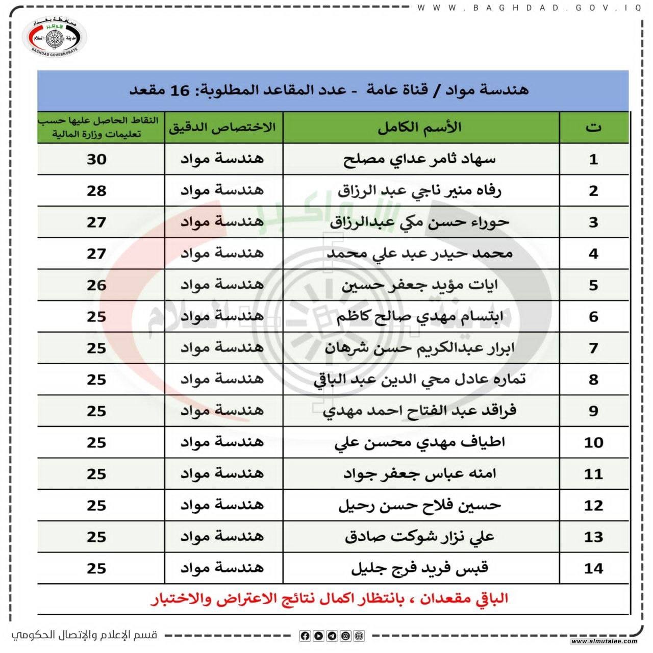 و أكد بيان صادر عن قسم الإعلام والاتصال الحكومي ورد لوكالة المطلع، "إعلان الأسماء الفائزة بالتعيين بصفة عقد ضمن قانون الدعم الطارئ للأمن الغذائي والتنمية، للقناة العامة ولاختصاصات البكالوريوس، هندسة معماري، هندسة ميكانيك، هندسة مواد، هندسة طرق وجسور، هندسة كيمياوي، هندسة موارد مائية، هندسة كهرباء، إحصاء، إدارة أعمال، سياحة وفندقة، لغات إنكليزي".