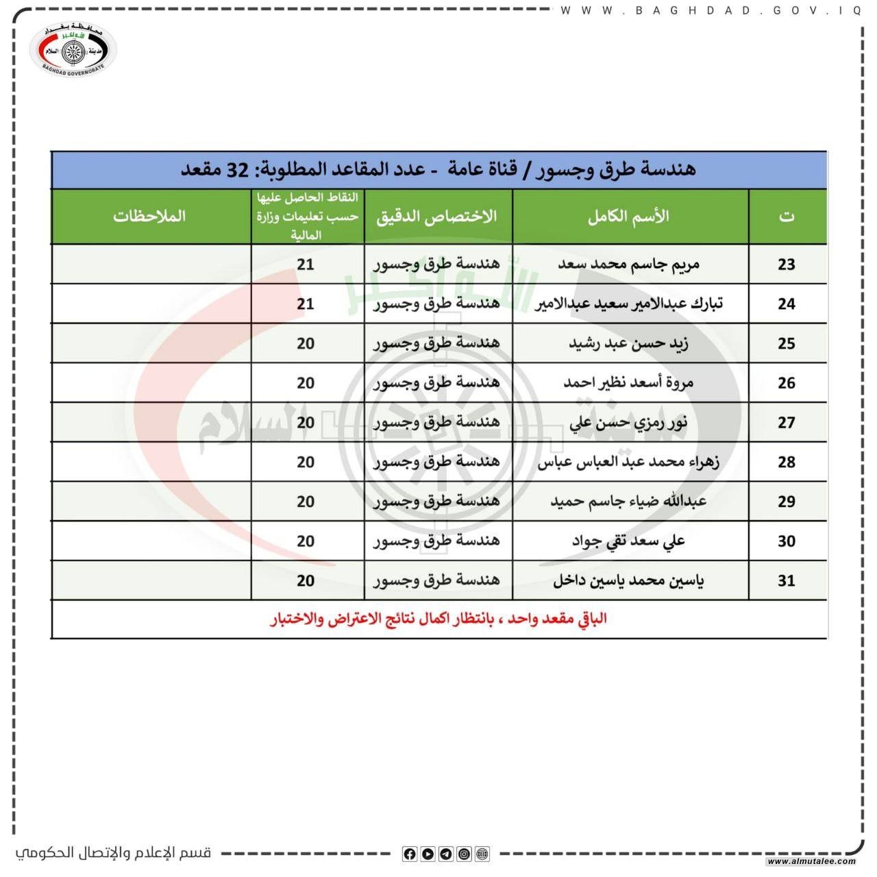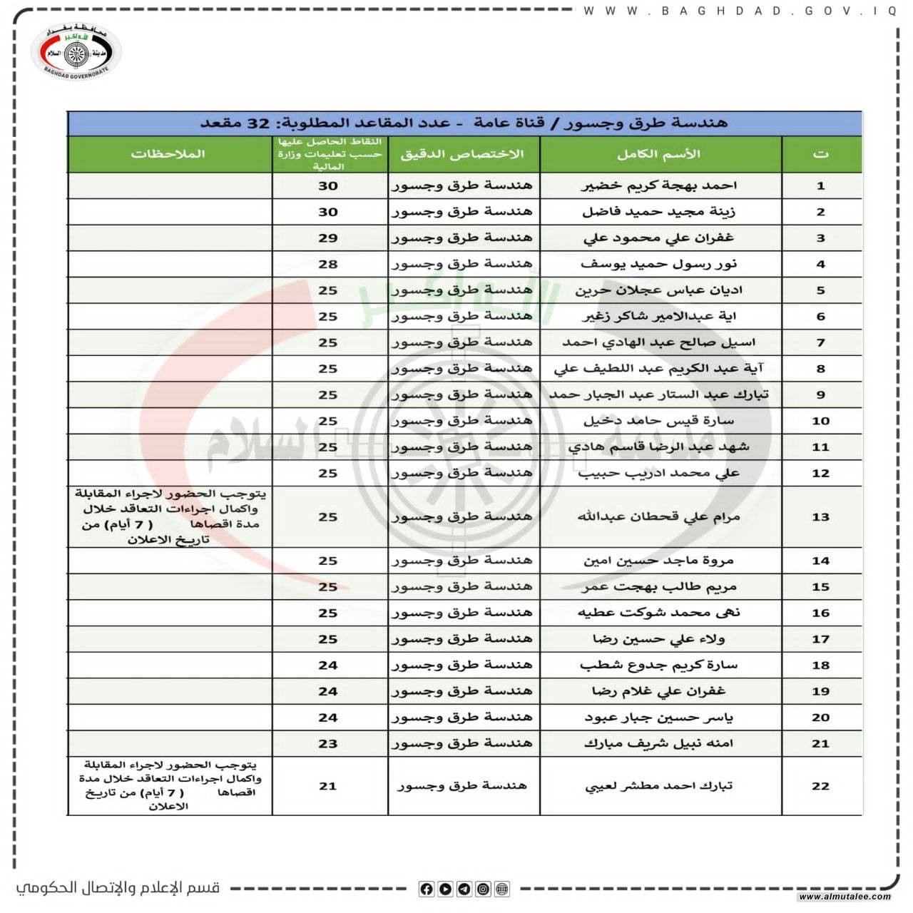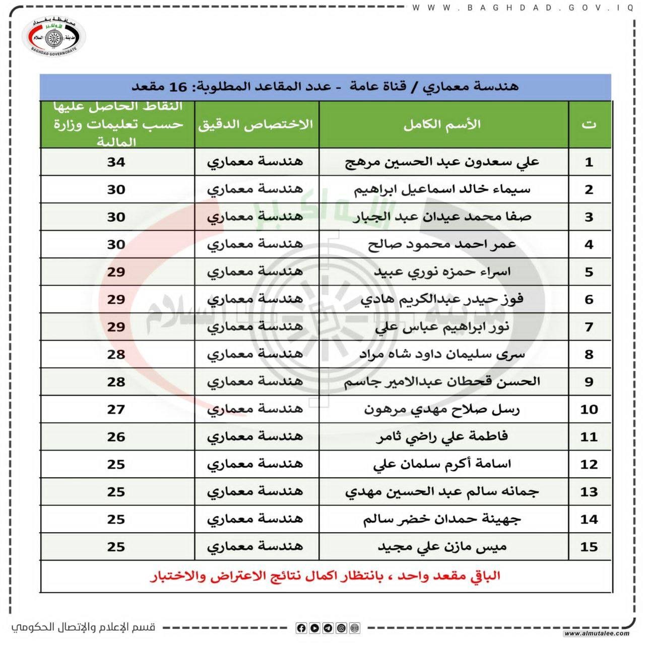 أعلنت محافظة بغداد ،اليوم الإثنين، أسماء الدفعة الأولى الفائزين بالتعيين بصفة عقد ضمن قانون الدعم الطارئ للأمن الغذائي والتنمية.