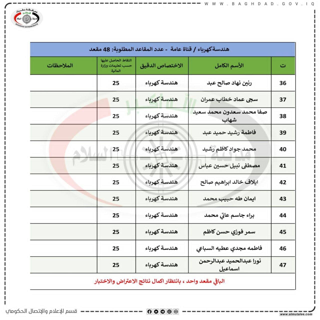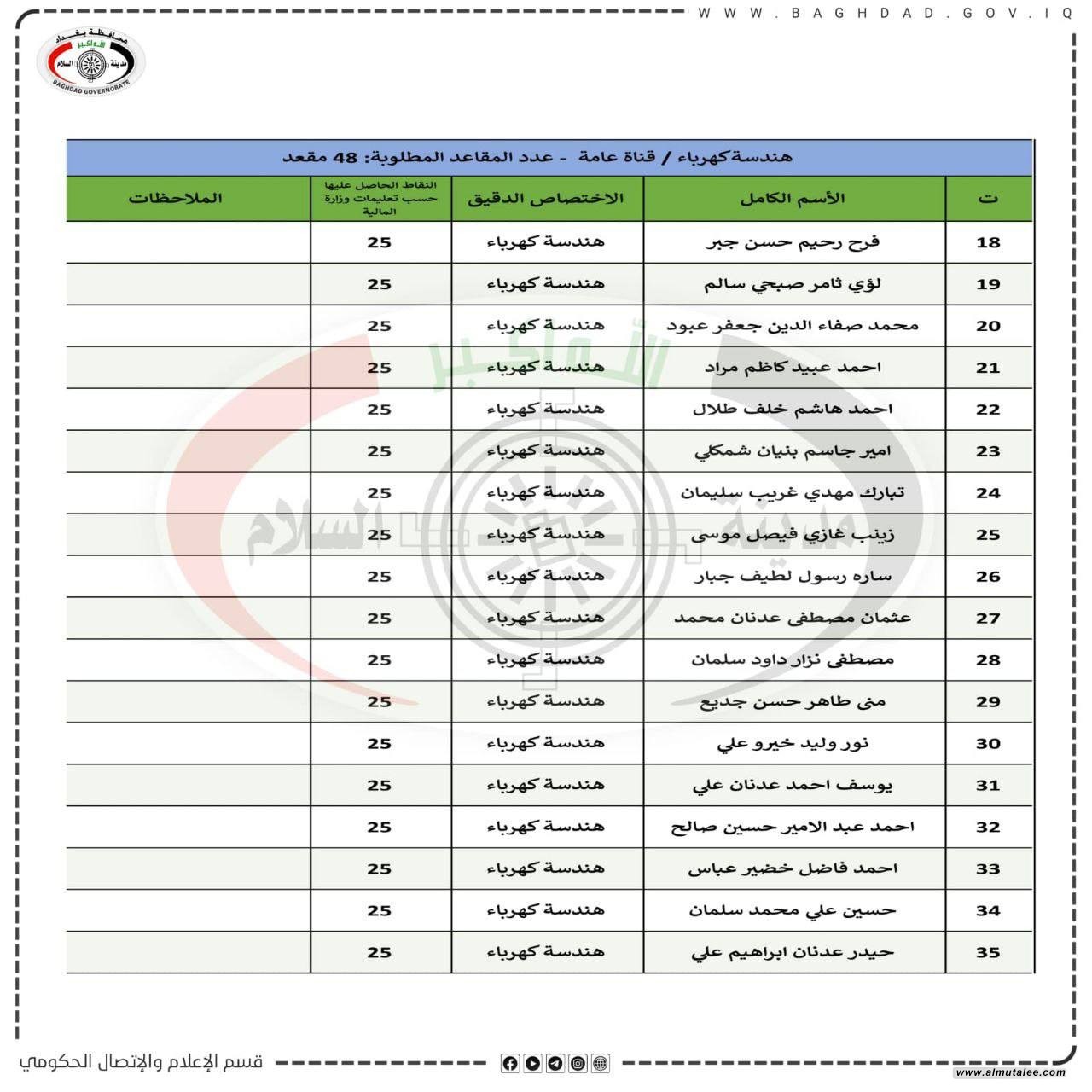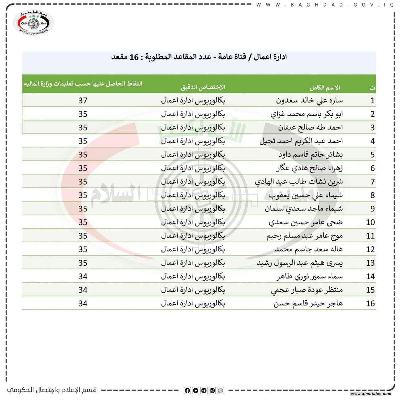 أعلنت محافظة بغداد ،اليوم الإثنين، أسماء الدفعة الأولى الفائزين بالتعيين بصفة عقد ضمن قانون الدعم الطارئ للأمن الغذائي والتنمية.