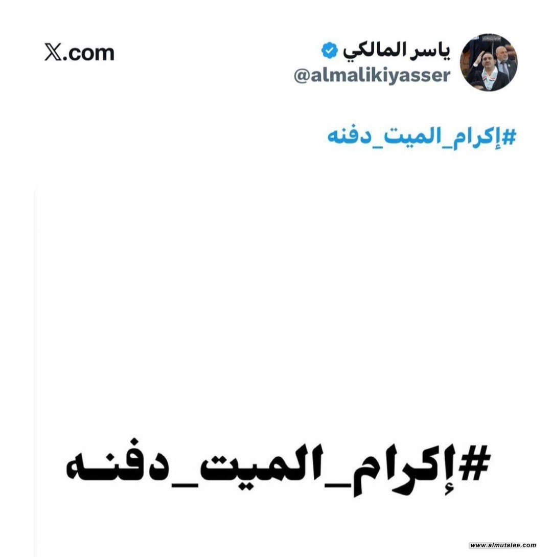 كتب الأمين العام لحركة البشائر الشبابية ياسر المالكي، اليوم الخميس، على صفحته في إكس “إكرام الميت دفنه”.