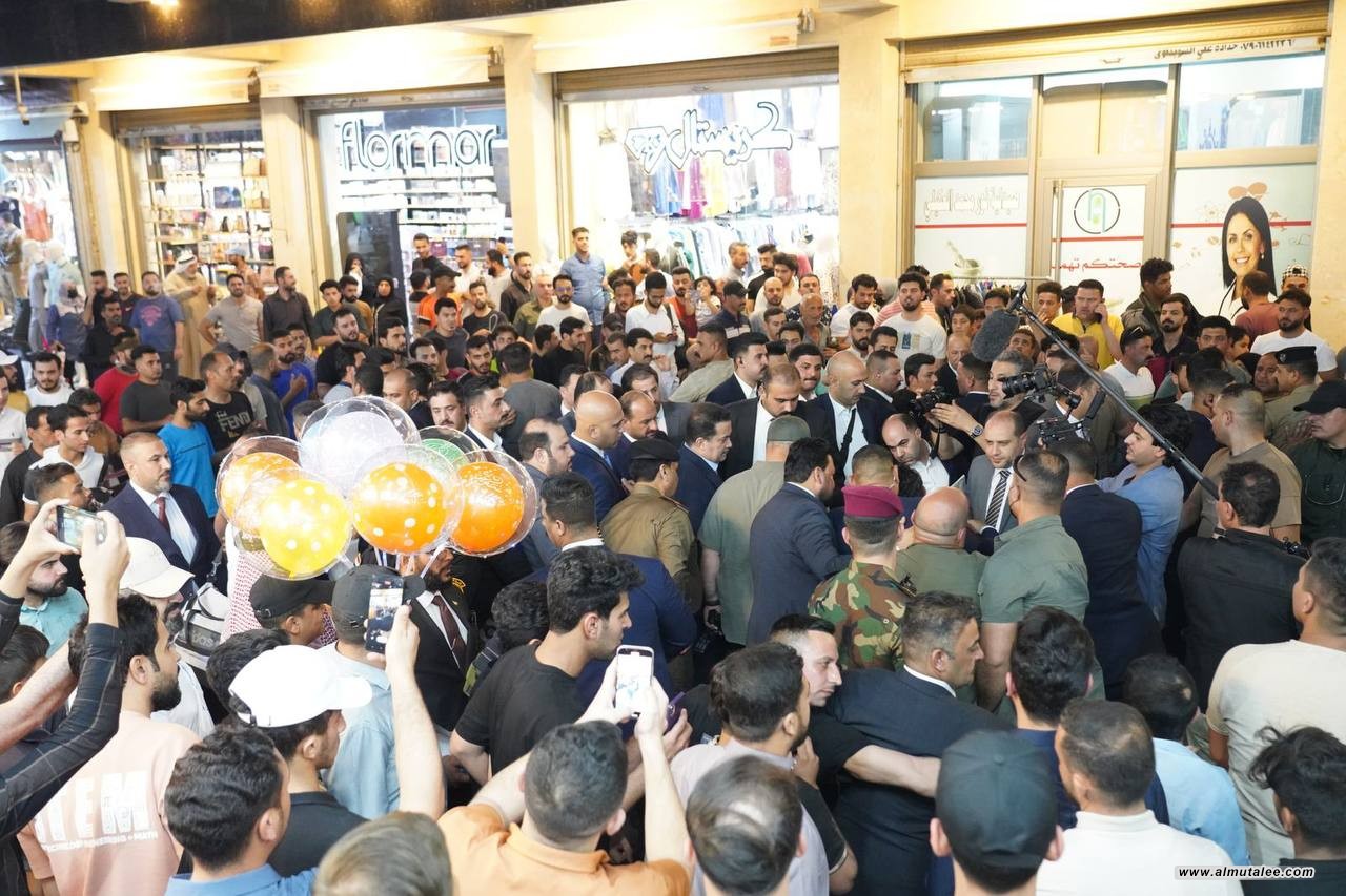 بەوێنە . سەرۆک وەزیران سەردانی یەکێک لە بازاڕەکانی ڕومادی دەکات و لەگەڵ کۆمەڵێک لە خەڵکی شارەکە کۆدەبێتەوە
