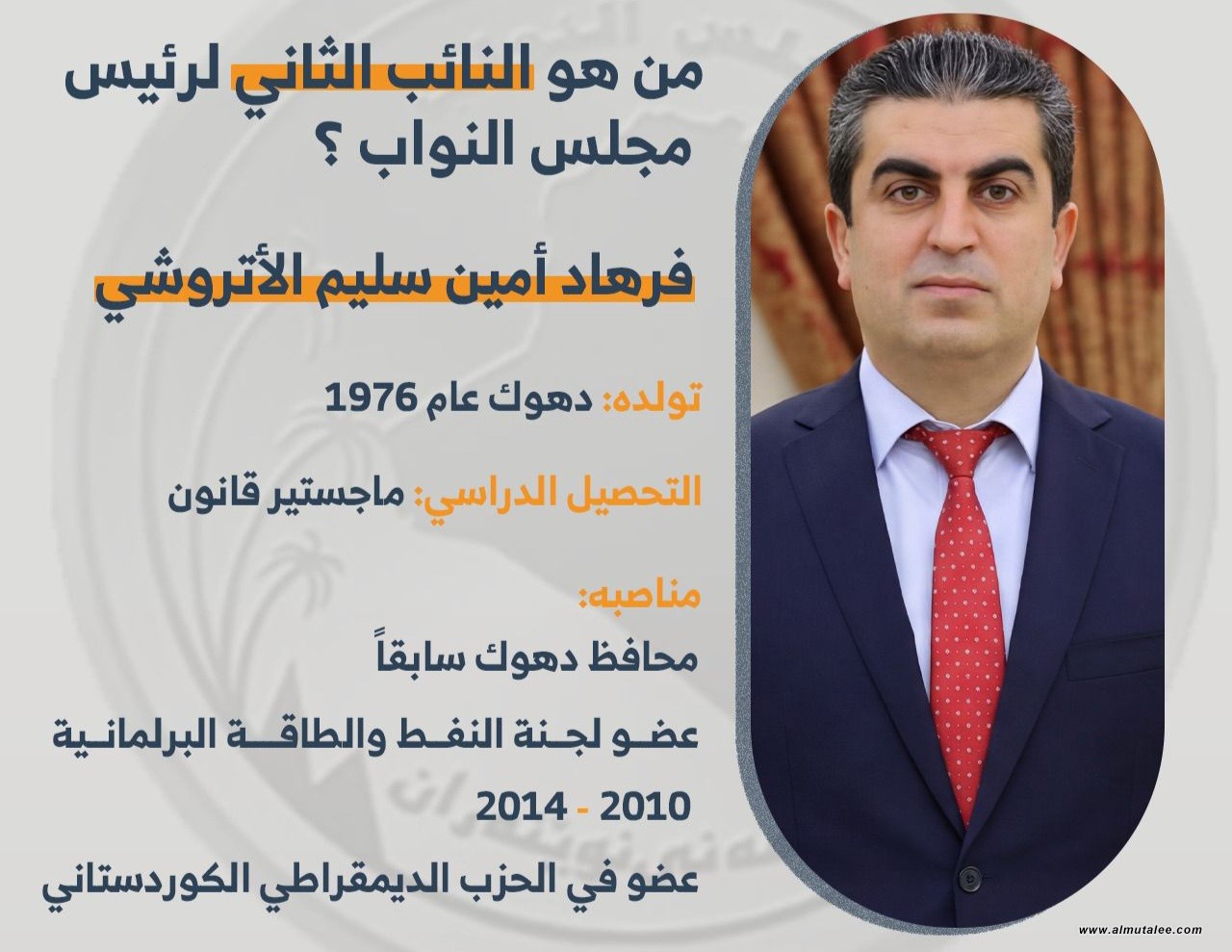 اعلنت الدائرة الإعلامية لمجلس النواب، اليوم الثلاثاء، عن انتخاب النائب فرهاد أمين أتروشي نائبًا ثانيًا لرئيس مجلس النواب.