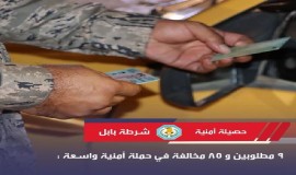 القبض على 9 مطلوبين وضبط 85 مخالفة في حملة أمنية واسعة في محافظة بابل