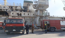 الدفاع المدني يعلن اخماد حريق اندلع بباخرة متوقفة في ميناء البصرة (صور)