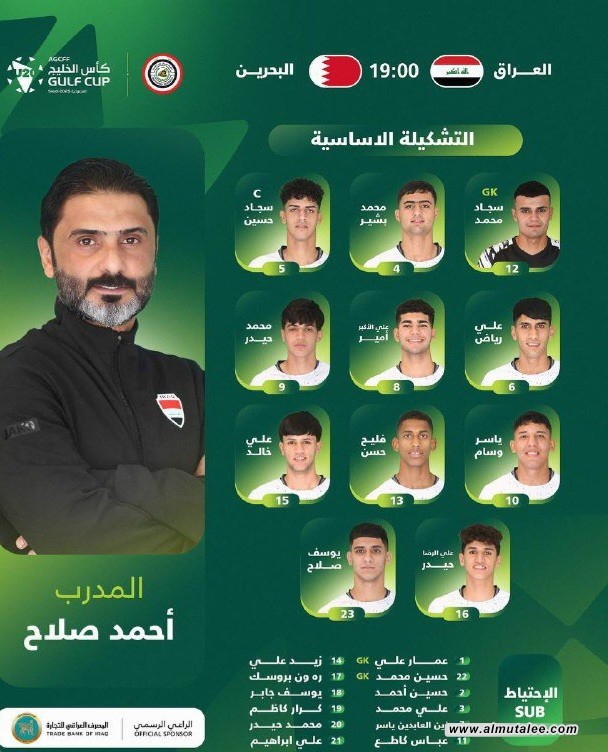 أحمد صلاح يحدد تشكيلة شباب العراق لمنافسات كأس الخليج بالسعودية