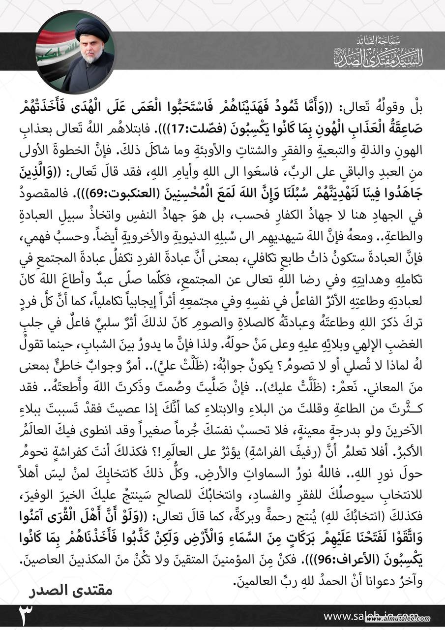 وجاء ذلك خلال خطبة اليوم الجمعة، وأدناه نصها وتلقته "المطلع":