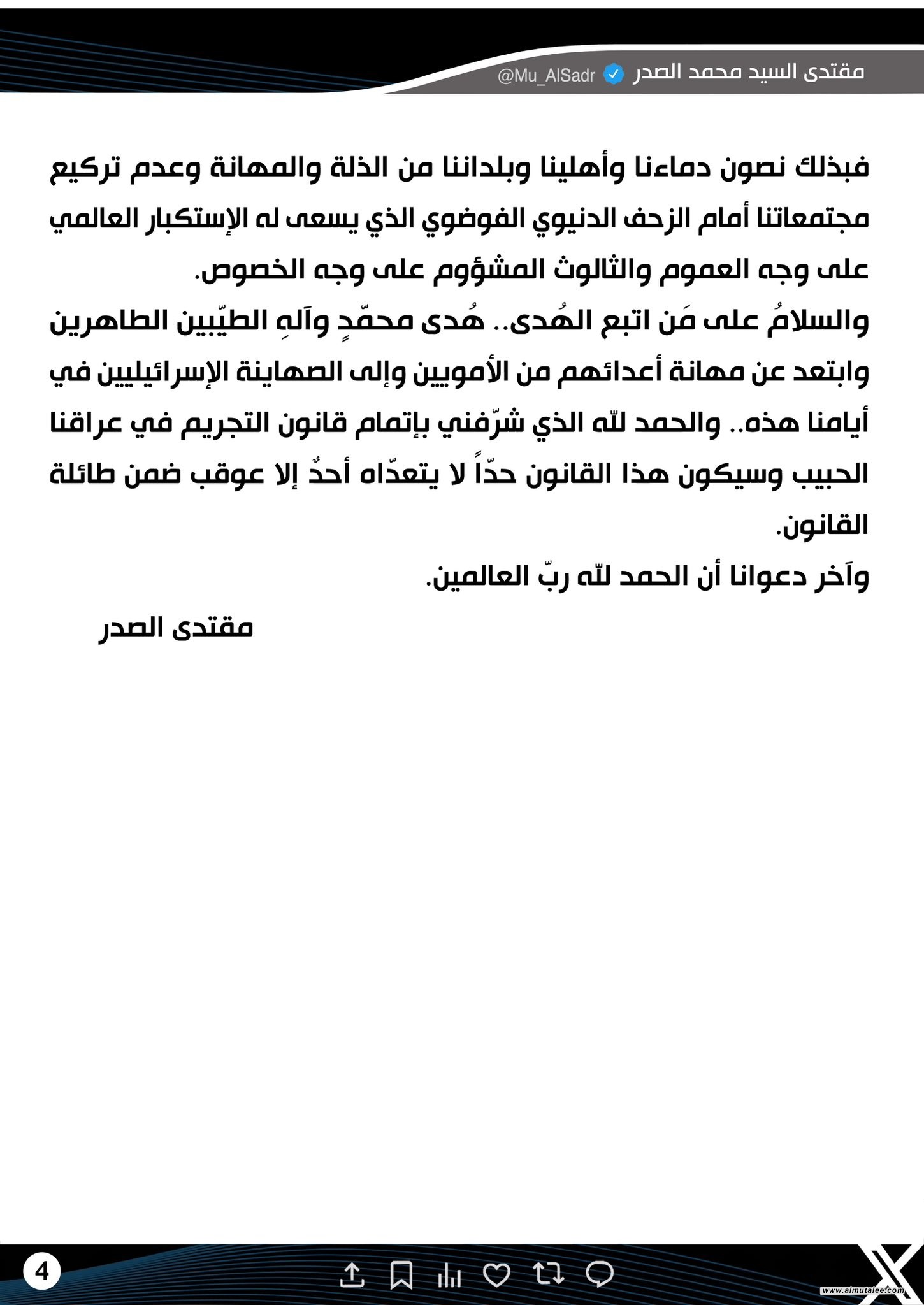 مكتب الصدر يصدر تعليمات تظاهرة السبت + وثيقة