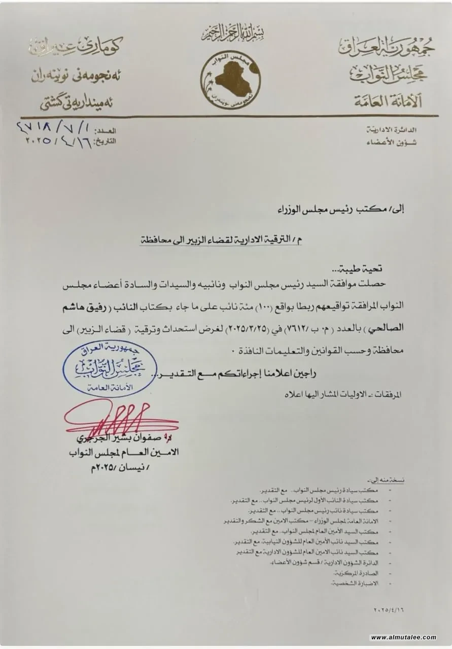 بالوثيقة... البرلمان يوافق على استحداث "محافظة الزبير" ويرفع الطلب لمجلس الوزراء