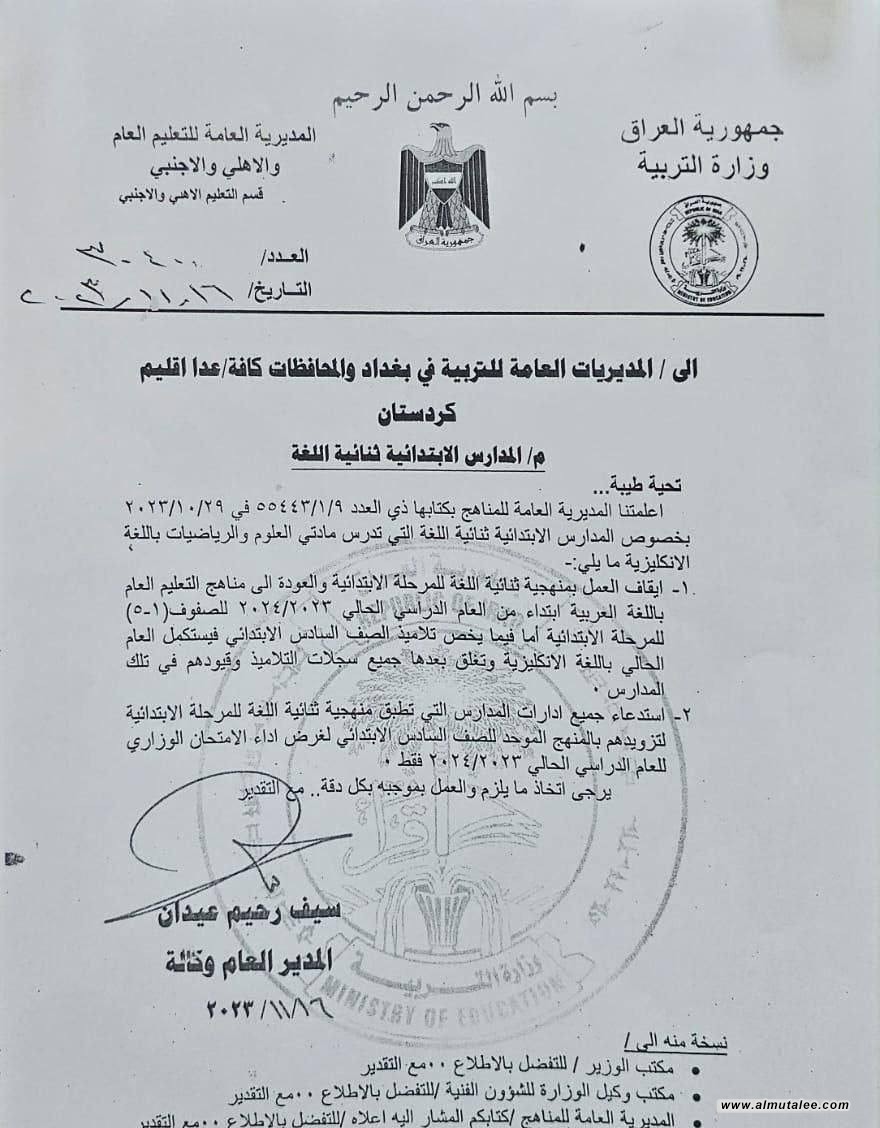 وأدناه وثيقة صادرة عن وزارة التربية تلقتها "المطلع":