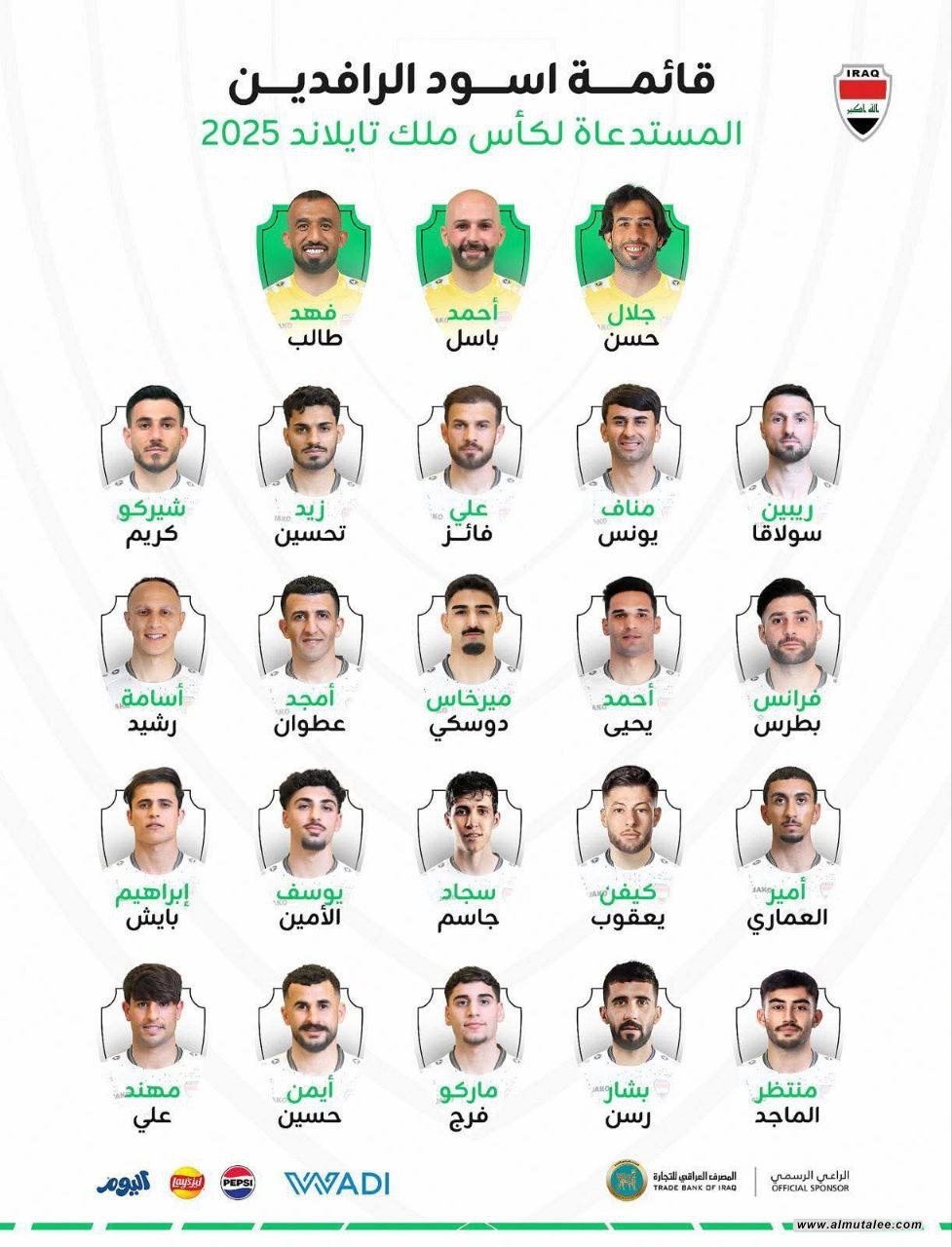 اعلن الجهاز الفني للمنتخب الوطني العراقي، مساء اليوم الخميس، عزن قائمة اللاعبين المستدعاة لبطولة كأس ملك تايلاند.