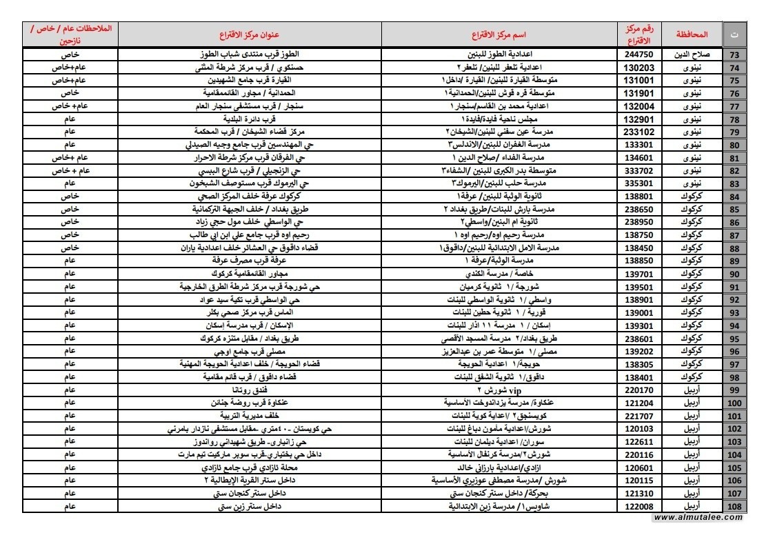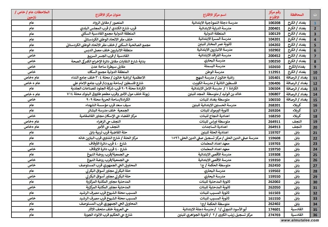 موتەڵع ناوی ئەو بنکانە دەخاتەڕوو کە ڕێگە بە دەزگاکانی ڕاگەیاندن دەدرێت لە کاتی هەڵبژاردندا ڕووماڵیان بکەن: -